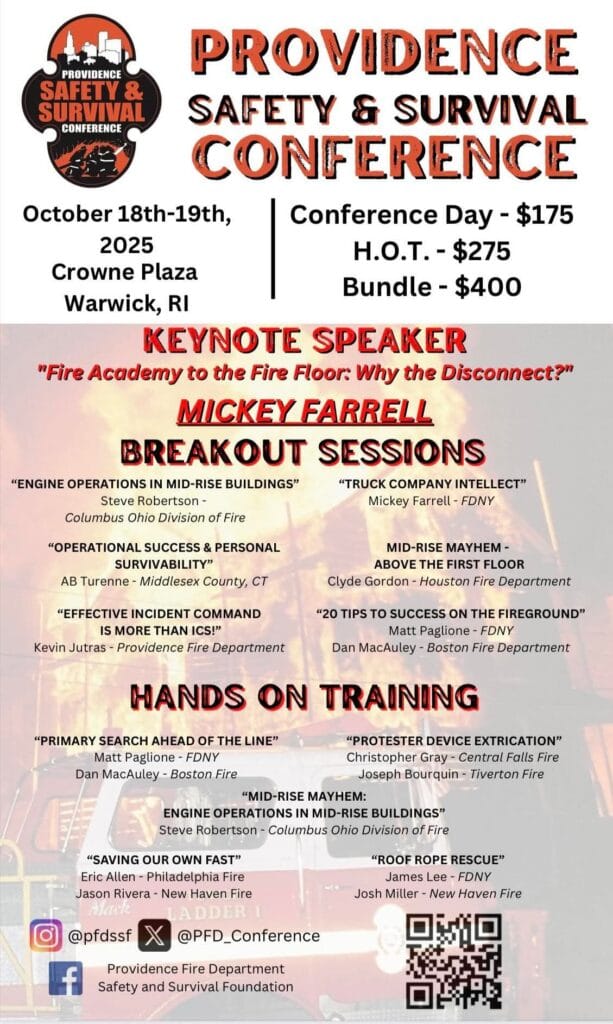 Additionally he was a member of Rhode Island’s Urban Search and Rescue Task Force where he was a Rescue Specialist and was a Squad Leader of D Squad. During this time he became an instructor and served as Central Falls Fire Department Training Officer and oversaw their Fire Academy.
